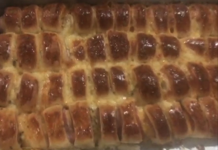 Em uma vasilha adicione o leite, açúcar e o fermento e misture bem.Em seguindo coloque o ovo,o óleo e mexa, adicione a farinha aos poucos até que fique uma massa lisa porém macia.Coloque a massa na bancada,coloque a manteiga e sove por 10 minutos,deixe descansar por 30 minutos.Depois dívida a massa em duas partes e abra com o rolo,coloque o recheio no centro e feche(passei água em umas das laterais pra facilitar na hora de fechar).Corte do tamanho que preferir e deixe crescer novamente antes de levar ao forno .Depois pincele com uma gema batida com uma colher de água,leve para assar em forno pré aquecido á 200 graus por aproximadamente 30 a 35 minutos.